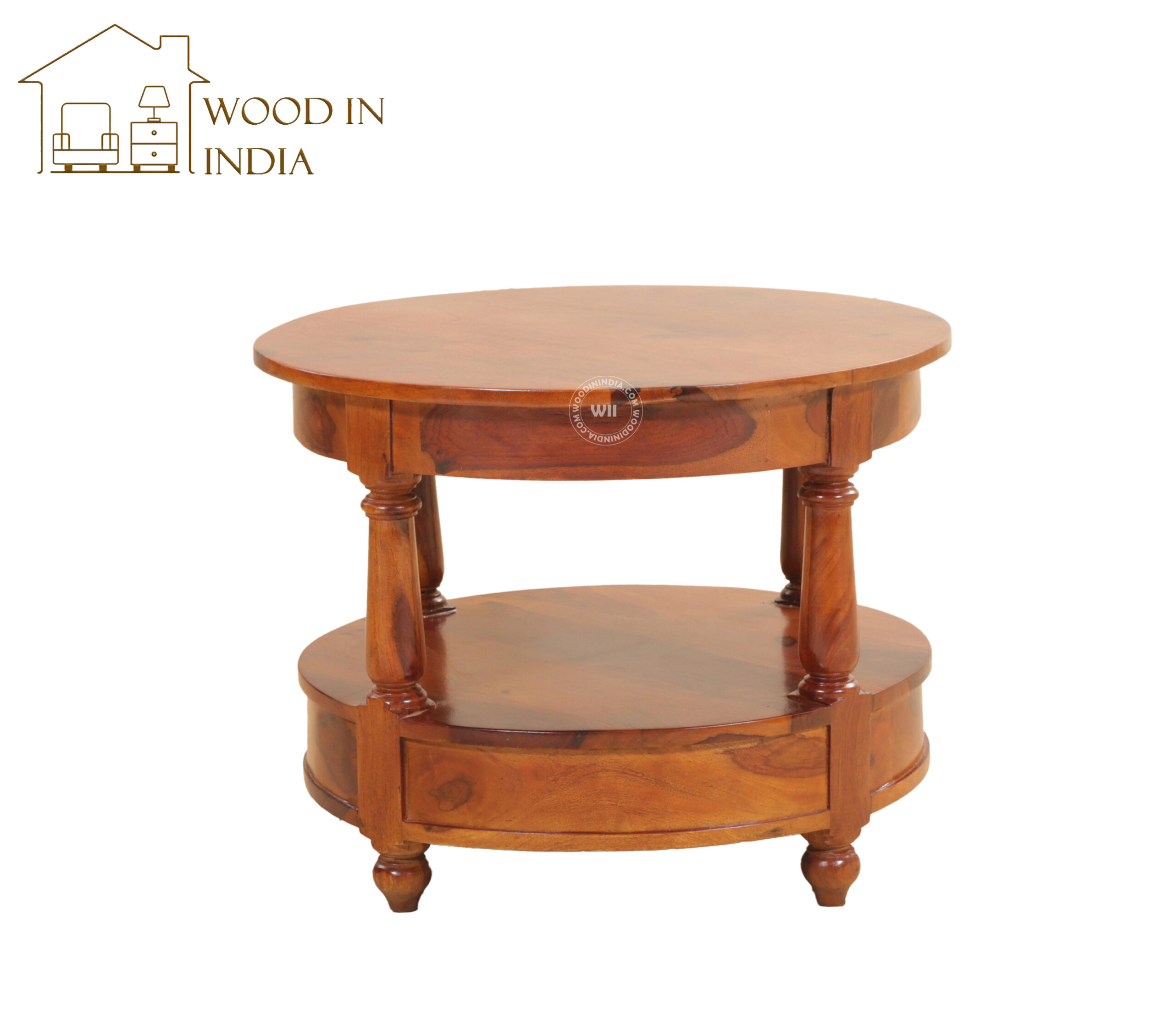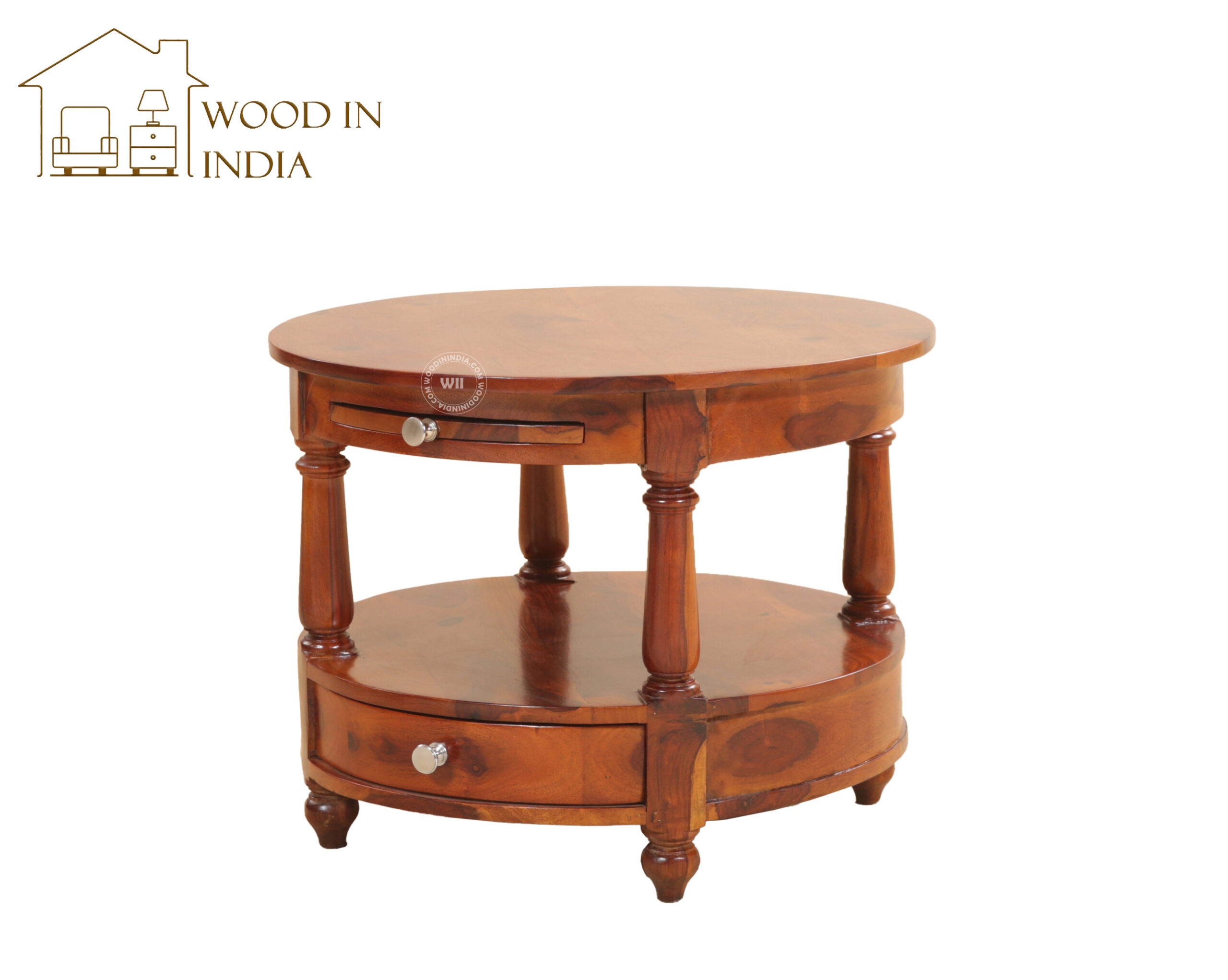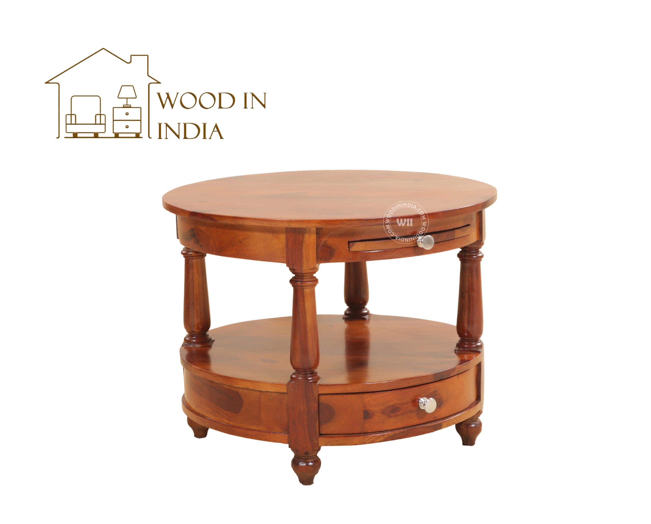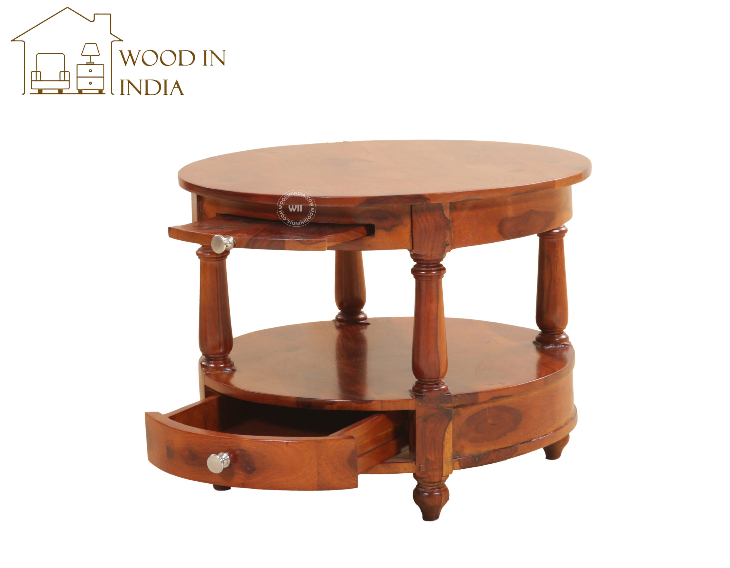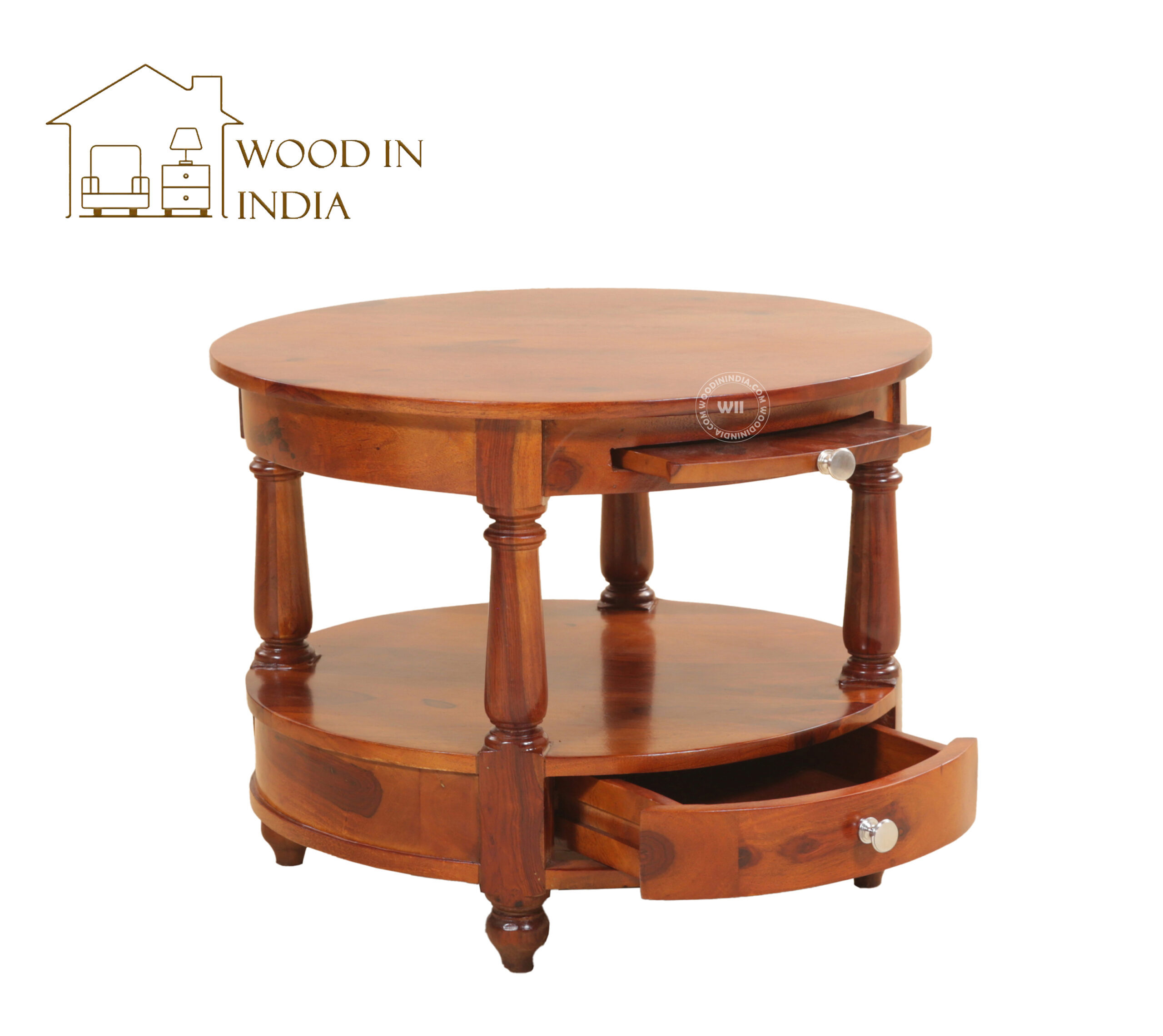 Auris Round Coffee Table with Drawers (Honey Finish)