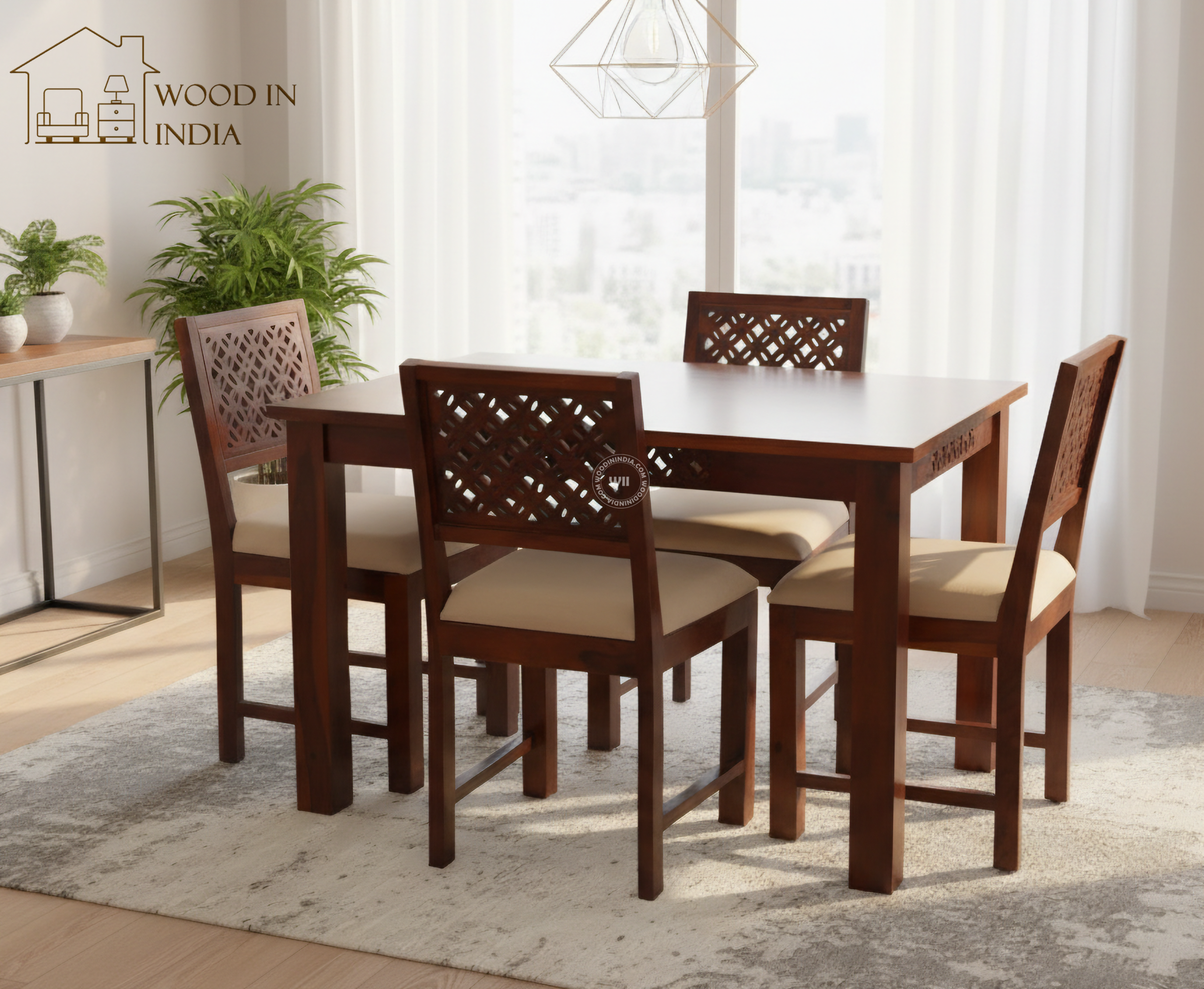 Carolina 4 Seater Dining Set (Honey Finish)