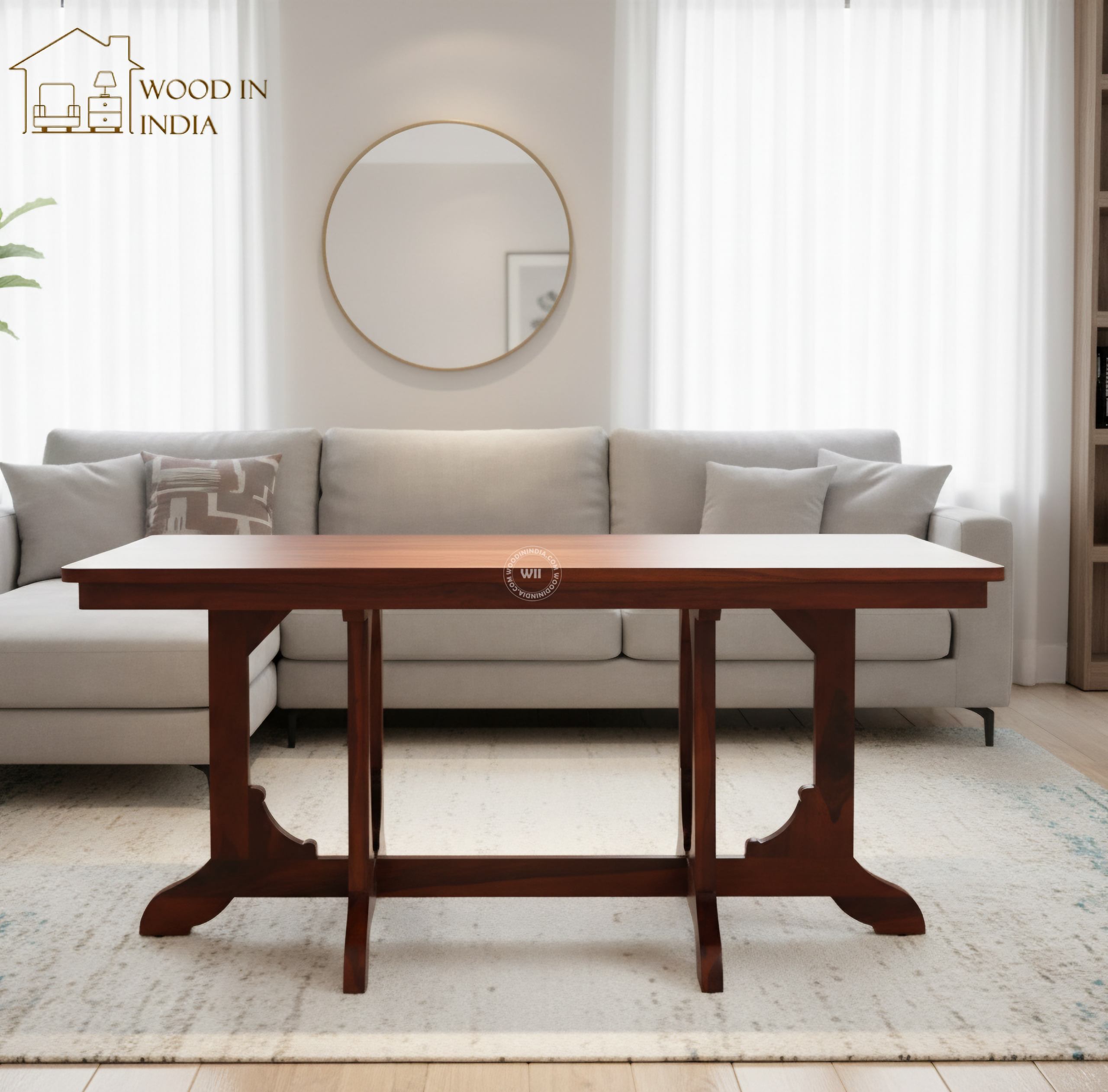The Cloin Dining Set stands out with its bold architecture and superior woodcraft. Designed for those who love to entertain, this six-seater set balances a heavy-duty feel with a refined aesthetic, making it the perfect anchor for a formal dining space.